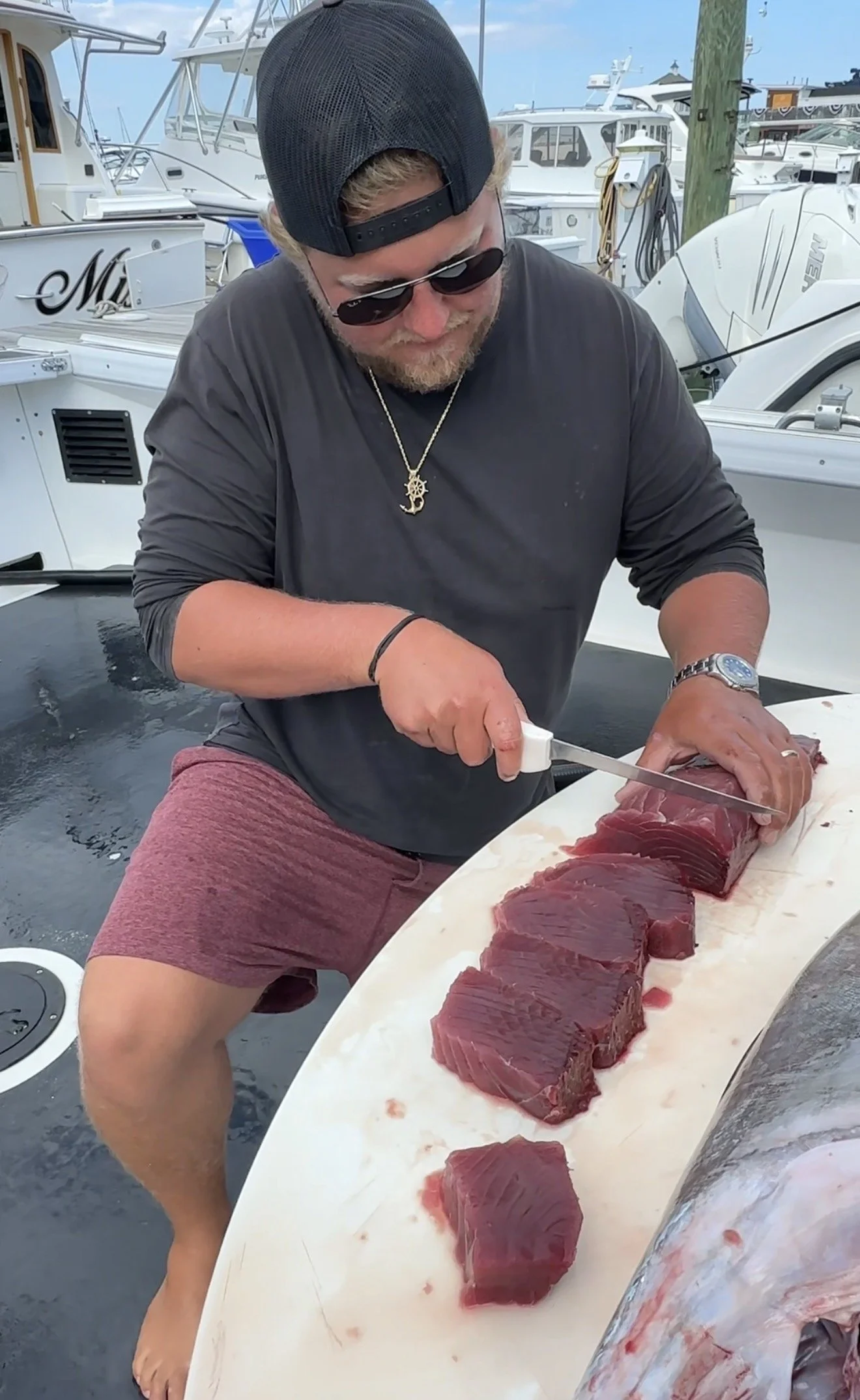 If we do land a giant tuna, it will automatically become property of the boat Due to NMFS regulations. Smaller fish will be cut up by Capt. Jake or Shep for you to take home and enjoy!